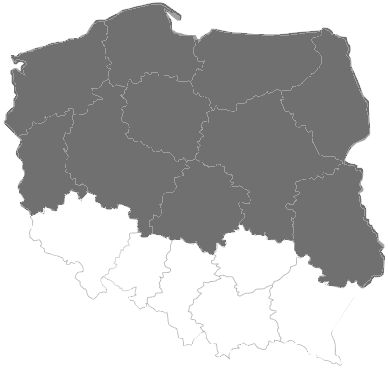 Województwa: zachodnio-pomorskie, pomorskie, warmińsko-mazurskie, podlaskie, lubelskie, mazowieckie, łódzkie, kujawsko-pomorskie, wielkopolskie, lubuskie