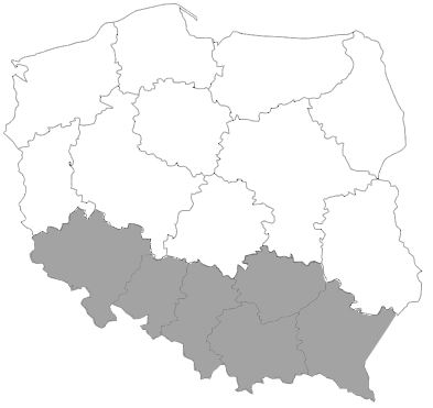 Województwa: dolnośląskie, opolskie, śląskie, małopolskie, świętokrzyskie, podkarpackie